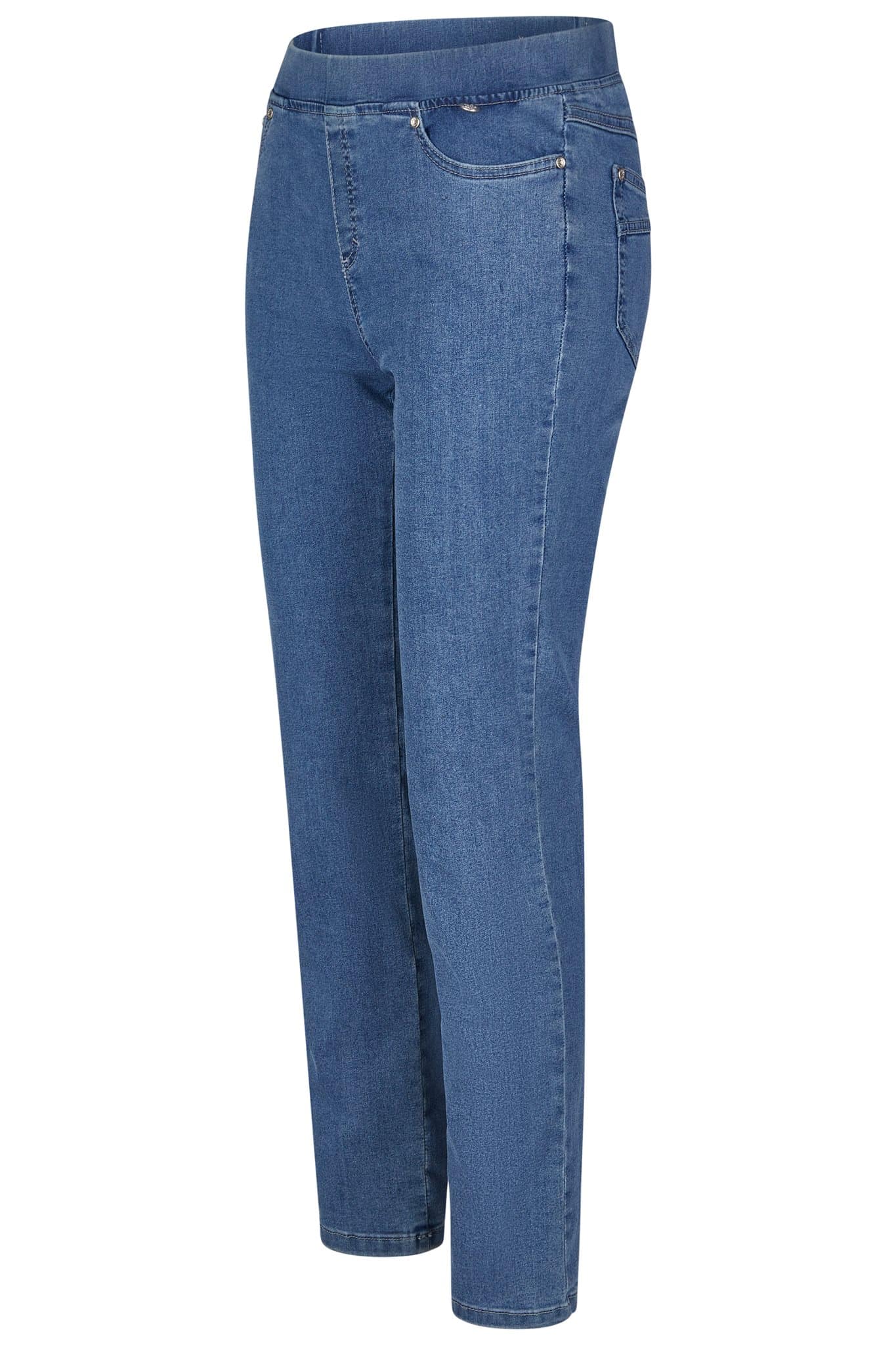 De jump In (model Agelika) van Anna montana is een volwaardige jeans in het 5pocket model maar dan met een elastieke brede band in de taille. De Jump in heeft een mooie pasvorm voor de meeste dames. Lengte is 76cm Beenwijdte is 34cm.