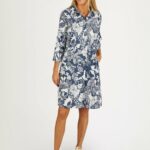 Bewerkte zomer jurk in mooie zuivere katoen kwaliteit met blauw witte print. Perfect voor de aankomende zomer en goed te combineren met vesten en andere items uit de nieuwste serie van Rabe deze zomer. Mooie halslijn met een sportieve polokraag en fijne details van het merk Rabe. Dit model heeft een korte mouw lengte tot op de elleboog en mooie zachte kwaliteit en kleurstelling blauw en wit