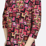 Mooi uitgewerkt shirt met een 3/4 mouw lengte en allover print van het merk Lea H. Prachtige halslijn en fijne kleurencombinatie met rood