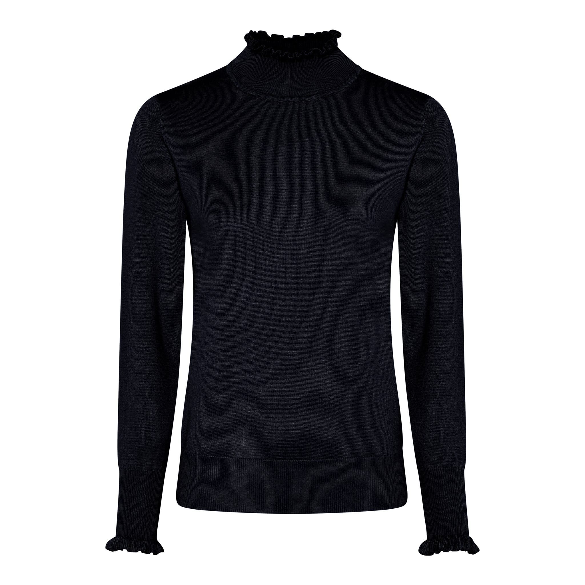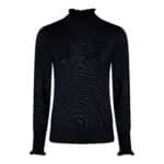 De perfecte basis voor dit najaar, uni dunne col trui/shirt met turtle nek col kraag. Dit model heeft een subtiele krinkel langs de kraag en mouwen. Verder heeft deze dunne col trui een lange mouw lengte, in een mooie zachte viscose kwaliteit van het merk Micha. Kleur zwart