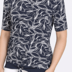 Mooi uitgewerkt zomers tshirt met een korte mouw lengte, print aan de voorzijde en elastieke band onderaan van het merk Lea H. Prachtige halslijn en fijne kleurencombinatie in het marine/wit.
