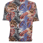 Shirt met een de nieuwste allover print in de een prachtige kleuren combinatie oceaan blauw, wit en rood van Roberto Sarto. Dit shirt heeft een elastiek aan de onderzijde (blouson model), gesmokte halslijn en met een kort mouwtje tot op de elleboog. Pasvorm is royaal.