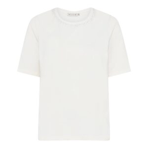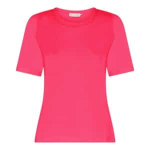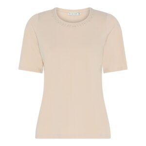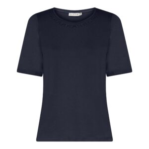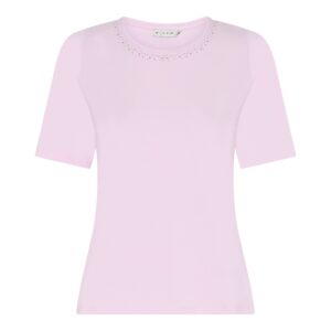 Uni basis shirt met mooie luxe halslijn met steentjes in een mooie zachte modal/katoen kwaliteit van het merk Micha. Korte mouw lengte tot op de elleboog in diverse kleuren.