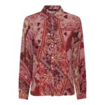 Zuiver viscose blouse, hooggesloten + knoopjes van het merk Micha. Leuk ontworpen met die prachtige subtiele wijn rode paisley print en met de lange mouw lengte. Uiteraard super leuk te combineren bij alle vesten en jasjes dit najaar zeker met de kleur wijnrood.