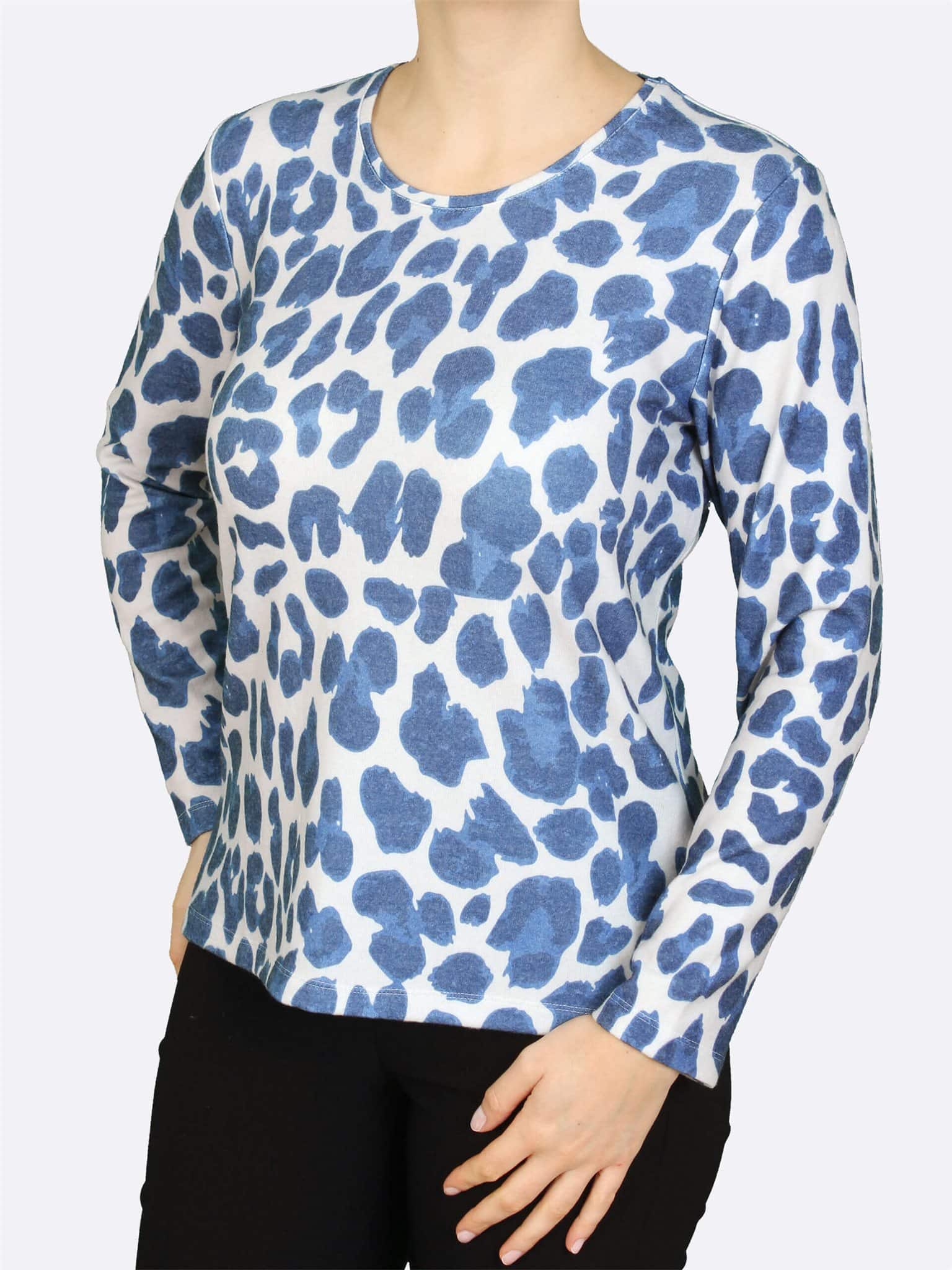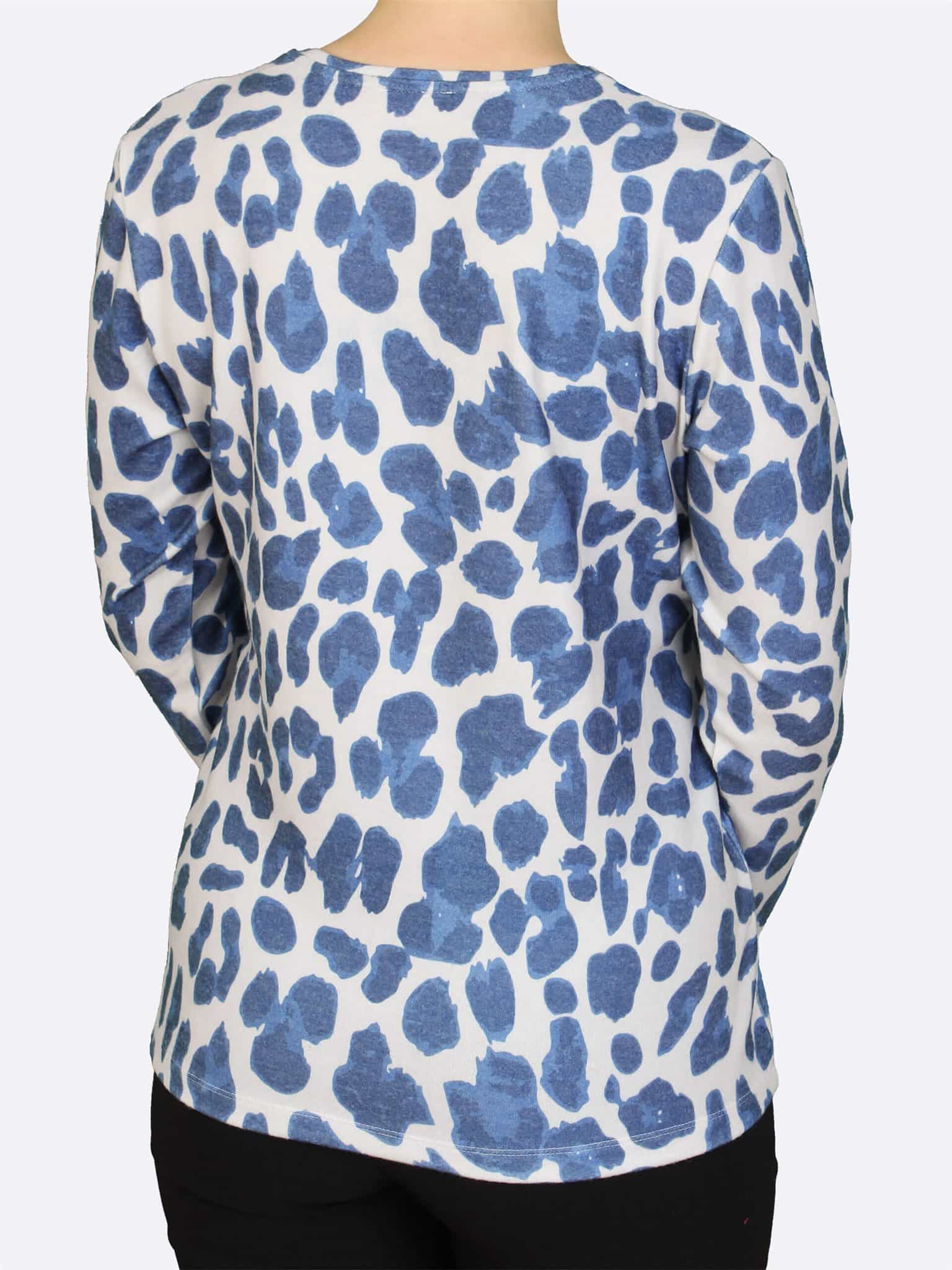 Allover print shirt in een dikkere warme kwaliteit met Lange mouw lengte van het merk Lea H. Subtiele print in een mooie kleurencombinatie met zand en blauw.