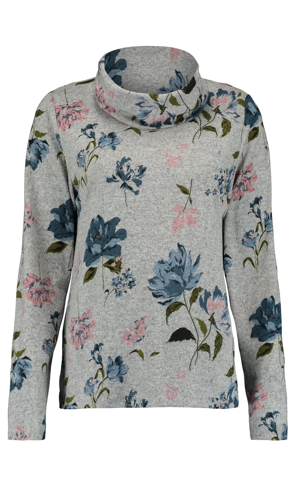 Bewerkte jumper met botanische bloemen print en col kraag. Dit leuke model is hooggesloten met een colkraag sluiting, kan zowel los gedragen worden en onder vest of jasjes.