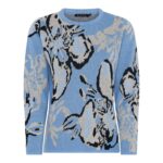 Mooie zachte bewerkte dunne trui met een een fijne print van het merk Micha. Dit model heeft een ronde hals en lange mouw lengte, in een super zachte katoen kwaliteit. perfect voor dit voorjaar. Deze kleuren combinatie blauw en sand is super makkelijk te combineren met alles basics.