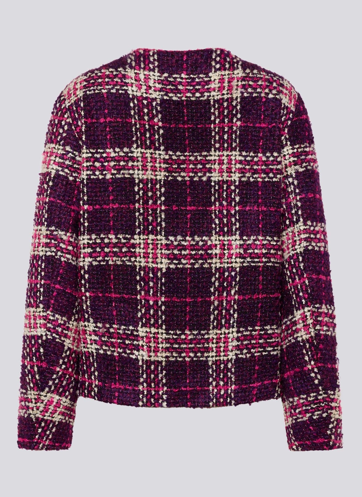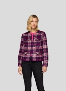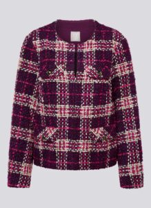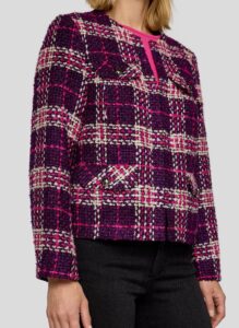 Prachtige jersey tweed blazer met ruit print van het merk Rabe. Dit tweed jasje met de kleuren, marine blauw , offwhite en violet is super draagbaar en gemakkelijk met vele basis broeken en rokken te combineren. Dit model is uitgevoerd in de nieuwste winter kleuren van Rabe.