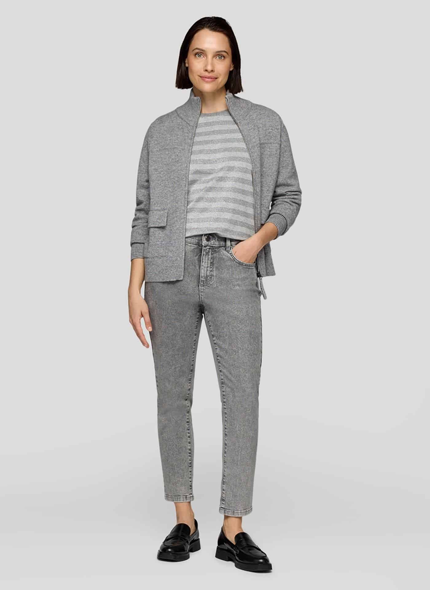 Mooi uitgewerkt vest in een prachtige wollen kwaliteit van Rabe met lange mouw lengte. Dit luxe vest is voorzien van een mooie ritssluiting en hoge kraag aan de bovenzijde. ideaal te combineren met alle shirts en blouses uit het nieuwste thema van Rabe deze herfst en winter.