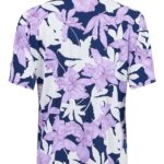 Prachtige 2 in 1 met een krachtige print met de kleuren marine blauw en lila. Dit model met het shirt wat vastzit aan het vestje is in de travel kwaliteit en kreukt daardoor niet. De pasvorm van dit merk is meer dan perfect dit kleed menig dame perfect af. En ook op een feestje loopt u er schitterend bij.
