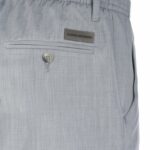 Pantalon voor heren met elastiek rondom in de taille, Prachtig uitgewerkte pantalon met kontzak op de achterkant (zie details foto), steekzakken aan de zijkant en namaakgulp sluiting. Ideaal model voor heren welke geen rits of knoopsluiting willen. zomerkwaliteit. Dit is het nette klassieke model in de dunne polyester kwaliteit in de kleur lichtgrijs melee.