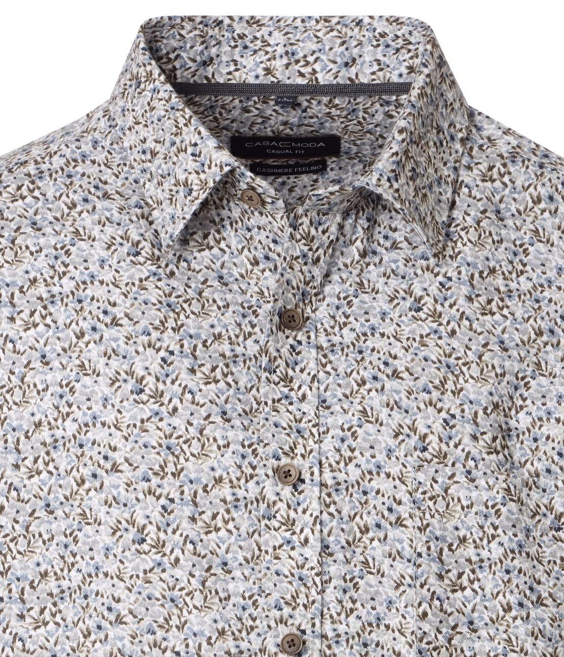 Overhemd met een prachtige bladeren print van het merk CasaModa en verder heeft dit overhemd een lange mouw. Mooie fijne zuivere zachte katoen kwaliteit (cashmere) van het merk CasaModa.