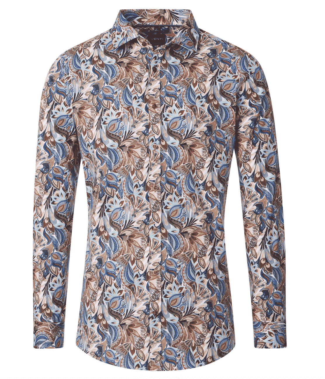 Uni Overhemd van het merk Venti met bewerkte kraag aan de binnenzijde, dit is dezelfde print als verwerking in nieuwe blazer van Casa Moda. Verder heeft dit overhemd een lange mouw. Mooie fijne zuivere zachte katoen kwaliteit van het merk CasaModa.
