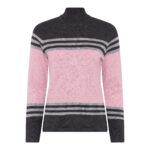 Bewerkte jumper + col met prachtige print colorblock print van het merk Micha. Deze fijne trui heeft een lange mouw lengte, ronde hals lijn en is hooggesloten. De kleurencombinatie is prachtig met oud roze op een grijze basis. Perfect te combineren dit najaar.