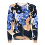 Bewerkt vest (fijnbrei kwaliteit) met prachtige print blauwe kleur op een camel kleurige basis van het merk Micha. Het vest is afgebiesd met glansgaren in dezelfde kleur en dit geeft een mooie uitstraling aan dit vest, verder heeft dit dunne vest een lange mouw lengte. Tevens zijn de korte mouw rib col shirts de perfecte combinatie bij dit vest, kleur blauw of camel gewoon of andere basics.