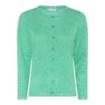 fijn dun gebreid vest met een open patroon van het merk Micha. Dit zuiver viscose vest heeft een lange mouw lengte en heeft een klein patroon, knopen en een ronde hals.